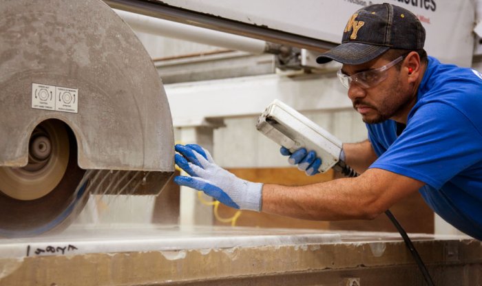 ¡Es hora de comenzar! Una vez que tengamos la plantilla y las medidas rectificadas de tu proyecto, en bodega planeamos cuidadosamente los cortes para aprovechar al máximo tu material y maximizar su belleza, esto hará de tu proyecto una obra de arte. Comenzaremos entonces los cortes y hacemos los acabados perimetrales como faldones y pulido de zoclos. También se sella el producto con selladores de la más alta calidad para obtener la protección necesaria contra agentes externos.